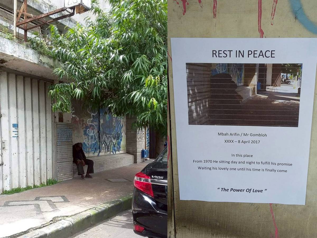 Tak ada yang tahu pasti sejak kapan Mbah Arifin atau yang dikenal dengan Pak Gombloh duduk di emperan toko yang sama setiap harinya untuk menanti kedatangan kekasihnya. Beberapa menduga ia sudah menanti sejak tahun 1970-an. Menurut cerita yang beredar, Mbah Arifin terpisah dengan kekasihnya saat terjadinya peristiwa politik di Kota Malang. Keduanya berjanji akan bertemu lagi di tempat yang sama di mana Mbah Arifin akan menanti jika situasi kota sudah aman.